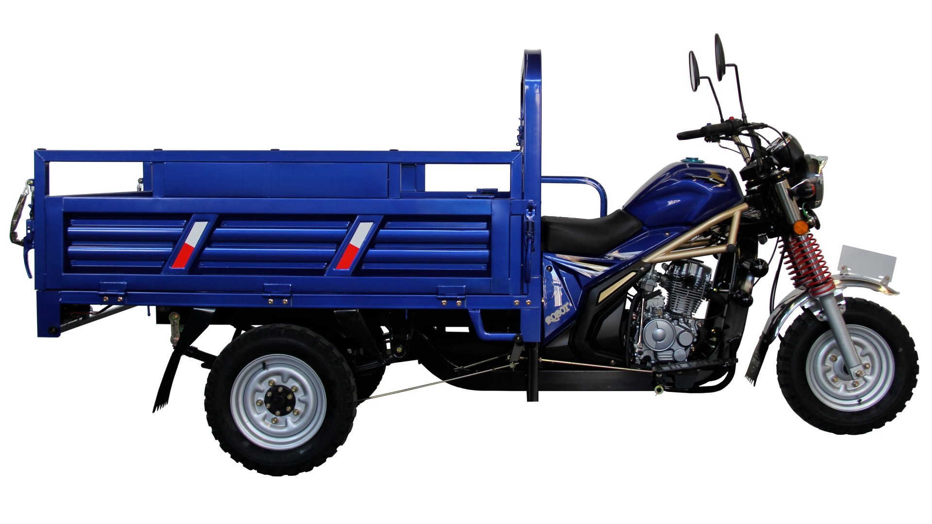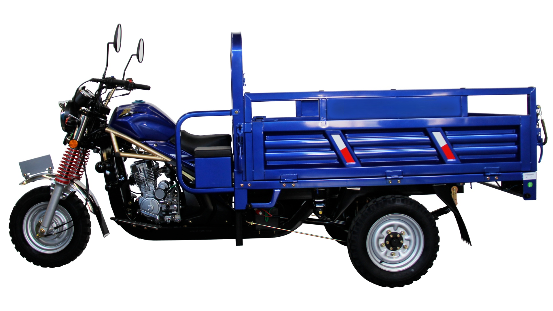 Standard configuration: 150cc air-cooling engine / 1.7×1.25m V carriage / 40×80 frame / Φ50 Hydraulic damping with outer spring / Plate spring 5 pieces / 5.00-12,5.00-12 / 16L tank/12V9AH battery Optional configuration: Plate spring 6 pieces / Cooling fan / Removable sunshade / Simple front shed